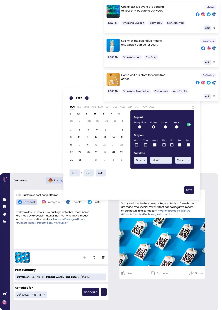 Create and plan your online content in advance, and set flexible and customizable scheduling options, such as daily, weekly, monthly, or yearly, without compromising on quality.