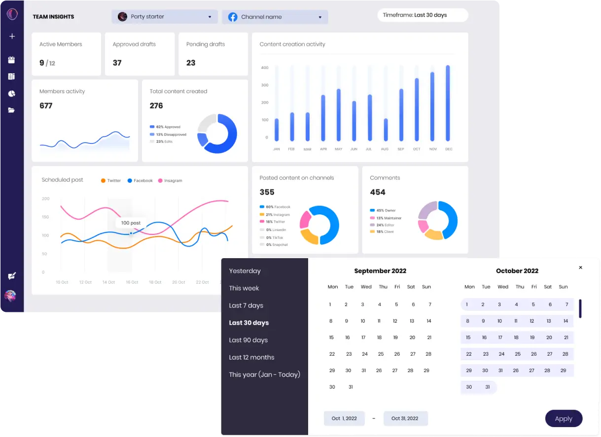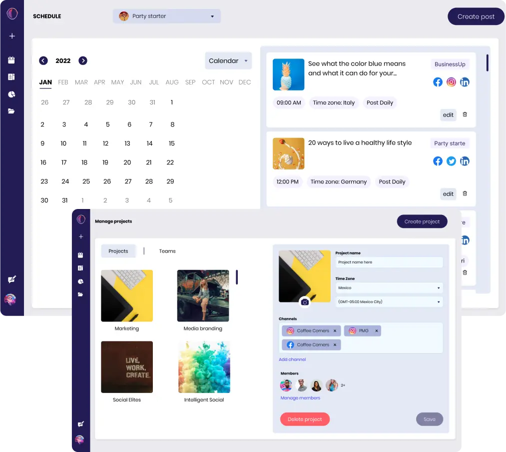 Organize your scheduled content across multiple social media platforms into projects for a clear and streamlined view of your operations.