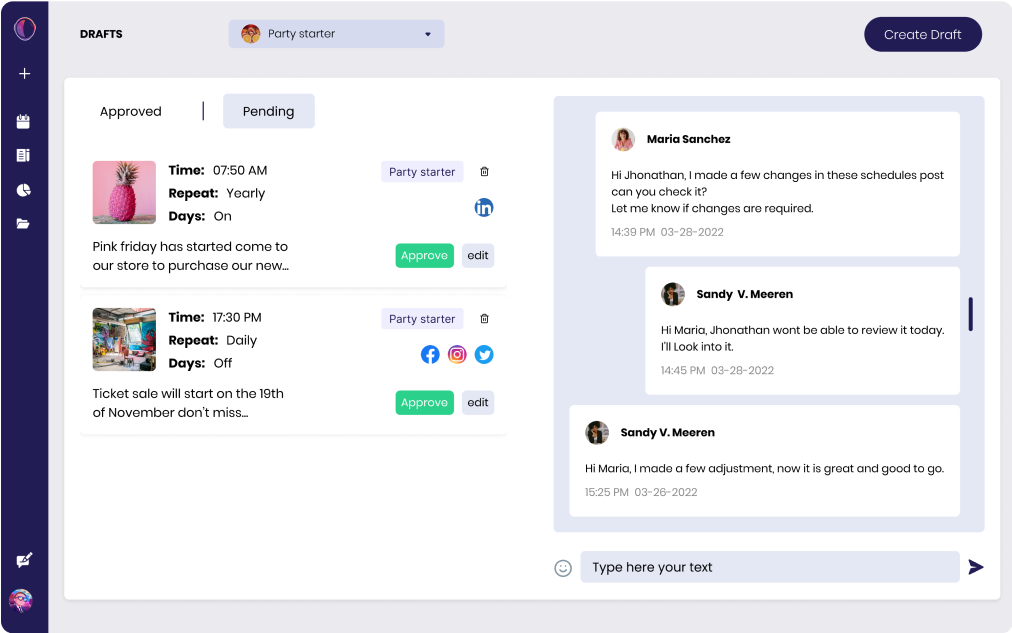 Draft your content before publishing and enable relevant collaborators to review it prior to posting.