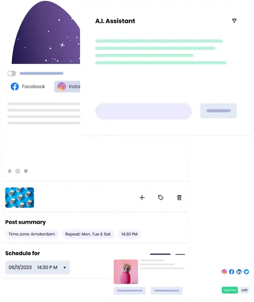Accelerate content creation with our automated writing assistance, which allows you to draft and publish social media posts more efficiently.